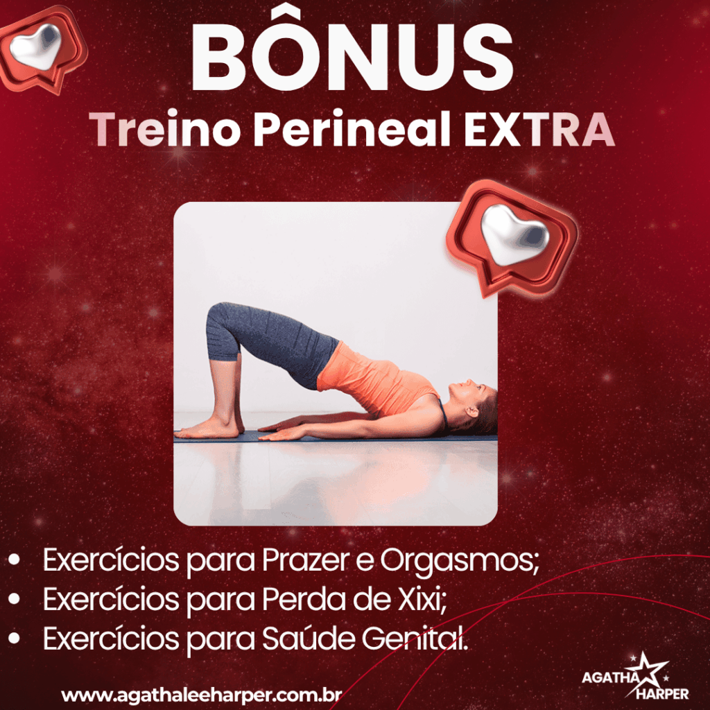 Além das fases Bônus: você também aprenderá Exercícios para Perda de Xixi e Exercícios para cuidar da Saúde Genital.