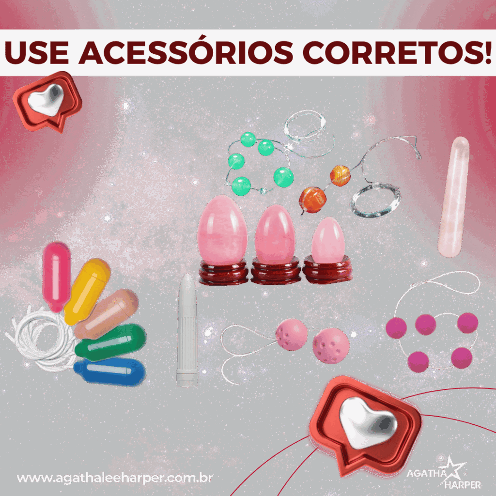 Muitas mulheres desistem do Pompoarismo porque tentam fazer os exercícios com acessórios errados ou muito pesados. Só que agora isso não será mais desculpa para desistir, pois você aprenderá quais são os acessórios corretos (Cones, Colar Tailandês, Ben wa e Personal) em seus mínimos detalhes. E no módulo de exercícios você aprenderá a utilizar corretamente cada um! Explico também sobre os Yoni Eggs (acessórios de pedras semipreciosas).