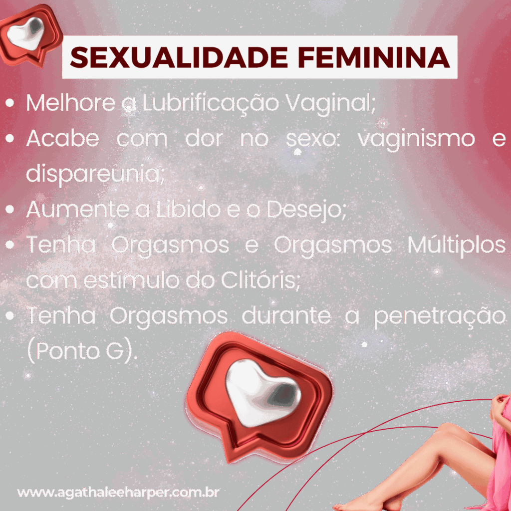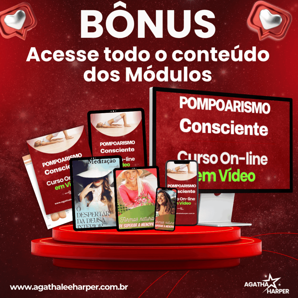 Criado por Agatha Lee Harper (terapeuta, psicanalista e neurocientista desde 2000 no mercado, com pós-graduação em Sexualidade Humana), este curso é uma verdadeira fonte de conhecimento prático sobre o pompoarismo, uma técnica que fortalece os músculos do períneo e proporciona inúmeros benefícios.