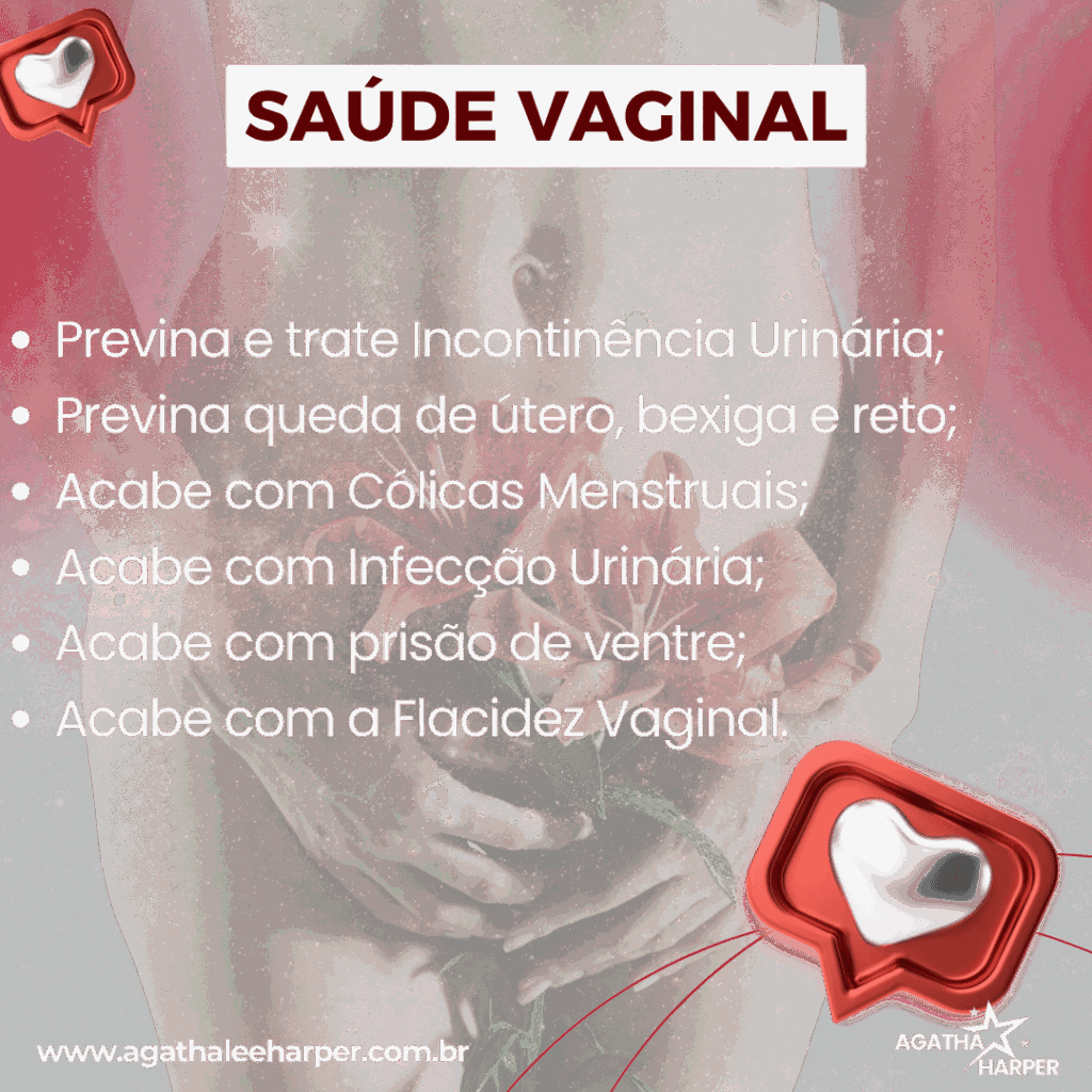perda de xixi, queda de bexiga e útero, flacidez pós parto, prisão de ventre, cólicas menstruais, ressecamento da menopausa…